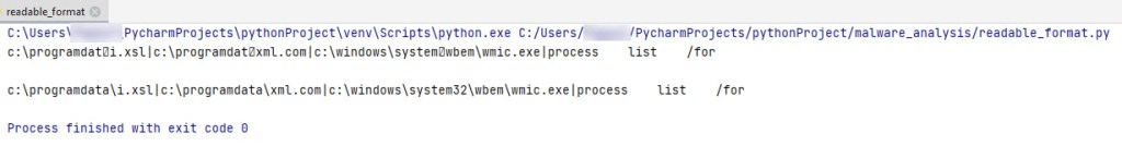 We can confirm what was found in Any.Run sandbox analysis by scrolling through the output from the readable format.