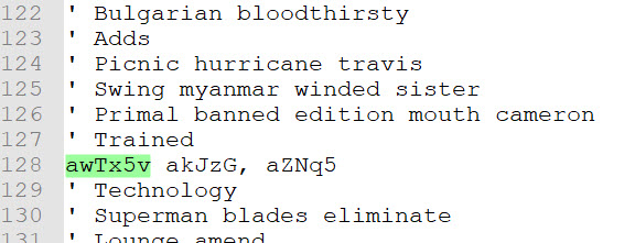 For example: highlighting “awTx5v” shows that it is being used on line 128, see the second screen shot. This could be an indication that it is legit malicious code or the bad guy is trying to throw off our analysis.
