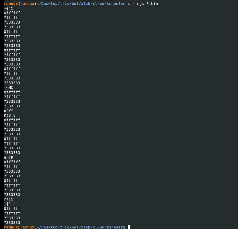 Lets look at all the files that end with “.bin” and see what we can find. Running the strings command on the “bin” files did not yield any good information.