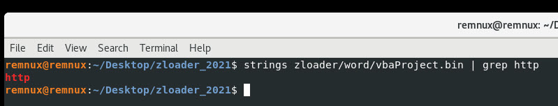 Command: strings zloader/word/vbaProject.bin | grep http -B15 -A15