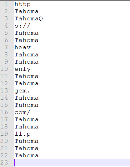 This is what we are left with after removing everything that ended with the letter “o”. Now lets remove “Tahoma” and line everything up into a single line.